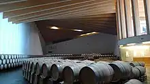 Las obras comenzaron en 1998 y la inauguración se realizó en 2001. El edificio se apoya en dos muros portantes de hormigón armado con una separación de 26 metros entre ellos. Dichos muros están revestidos por lamas verticales de madera tratada con sales de cobre y trazan una línea sinusoide, actuando como cerramiento y que recuerdan a una hilera de barricas. La cubierta está formada por vigas de madera que apoyan sobre los muros laterales, describiendo así una superficie ondulada. El material empleado en su acabado exterior es aluminio, que contrasta con la madera de los muros. El interior de la bodega acompaña la concepción vanguardista del exterior.