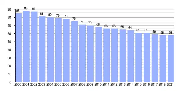 | Gráfica de evolución demográfica de Boente de Abaixo entre 2000 y 2021 |