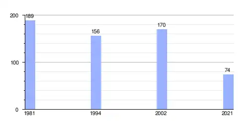 Hasta 2021 la población era de 74 habitantes,[2] con una densidad de población de 16,35 habitantes por kilómetro cuadrado.[2]