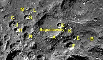 Por convención estos elementos son identificados en los mapas lunares poniendo la letra en el lado del punto medio del cráter que está más cerca de Boguslawsky.
