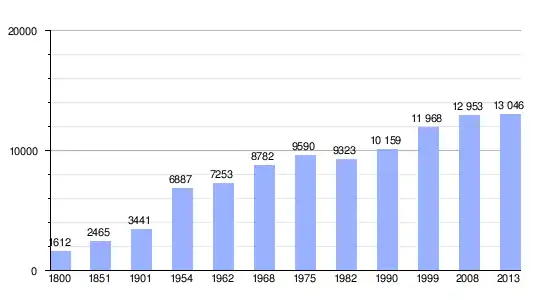 | Gráfica de evolución demográfica de Bois-Guillaume-Bihorel entre 1800 y 2013 |