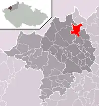 Se encuentra ubicada al noroeste de la región, en la ladera sur de los montes Metálicos, cerca del río Ohře —un afluente izquierdo del río Elba—, de la región de Karlovy Vary y del estado alemán de Sajonia.[1]