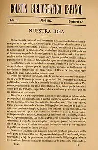- Miguel Almonacid y Cuenca (abril de 1897). «Nuestra idea». Boletín bibliográfico español. pp. 1-2. Consultado el 3 de diciembre de 2022.