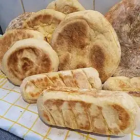 Como cualquier pan, se compone de harina de trigo, levadura, agua y sal. Sin embargo cuenta con ingrediente poco habitual y ese es el boniato, el cual se pela, se cuece y se hace puré. Se mezclan todos los ingredientes mediante un amasado enérgico, y luego se deja reposar de 2 a 3 horas para que fermente. Luego se divide en porciones pequeñas y se aplanan para obtener una masa con una altura aproximada de 3 cm grosor y 10 cm de diámetro.[2]