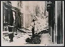 Efectos del bombardeo de las calles de Cádiz por parte del destructor republicano Almirante Valdés.