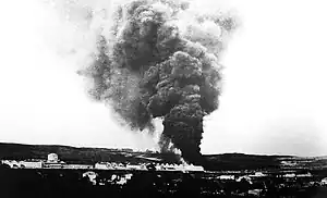 ![]() Incendio en los almacenes Nazareth Teixeira & Cia, en Mooca, consecuencia del bombardeo | ||||