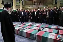 El líder supremo Alí Jamenei prometió una dura respuesta al ataque. Su asesor político, Ali Shamkhani, afirmó que Estados Unidos «sigue siendo directamente responsable, tuviera o no conocimiento de la intención de llevar a cabo este ataque».[46] Irán también envió una carta al Consejo de Seguridad de la ONU diciendo que «se reserva su derecho legítimo e inherente a responder con decisión».[47] En varias ciudades de Irán, incluida la capital, Teherán, así como en Tabriz e Isfahán, se reunieron grandes multitudes de manifestantes ondeando banderas palestinas e iraníes y exigiendo venganza.[48][49]