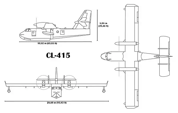 El diseño del CL-415 surge por los requerimientos de un avión anfibio contraincendios capaz de detectar y combatir incendios forestales. El avión se ha construido pensando en su fiabilidad y longevidad, por lo que se han utilizado materiales anticorrosivos. El CL-415 también se ha usado en misiones SAR y de guardacostas.
