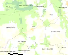 Bona es una población y comuna francesa, situada en la región de Borgoña, departamento de Nièvre, en el distrito de Nevers y cantón de Saint-Saulge.