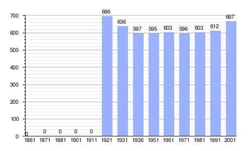 | Gráfica de evolución demográfica de Bondo entre 1861 y 2001 |