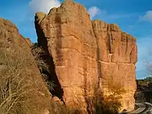 Igualmente, destacan numerosas formaciones rocosas, profusamente erosionadas, como la Obradá, el Castil de Rey y la Peña Sancho. La altura máxima del término es el Pico del Telégrafo, alcanzando los 1410 m, con otros promontorios rocosos como el Pico de la Zorra, la Tabarreña, las Cabezas, la Peña de los Ramos, la Peña del Madroño, la Peña del Cuervo, Las Muedas y muchas otras, que oscilan entre los 1360 y los 1200 m de altura.[1] Entre la vegetación, destaca singularmente el Pino de las Cuatro Garras, un ejemplar de pino negral que consta de cuatro enormes brazos, y alcanza una altura aproximada de 30 metros.