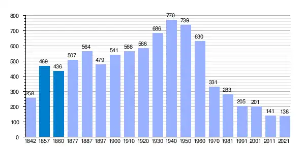| Gráfica de evolución demográfica de Boniches[9] entre 1842 y 2021 |