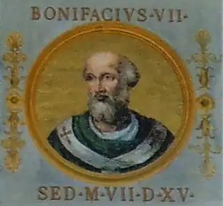 Bonifacio VII fue un antipapa que ocupó el trono pontificio de forma ilegal en dos ocasiones, en 974 y entre 984 y 985. Fue considerado por sus coetáneos como un «monstruo».[1]