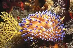 Los colores son variables y vivos. El color base del cuerpo oscila de blanco a amarillo o naranja claro traslúcidos. Las puntas de las cerata tienen color azul, blanco, amarillo o rojo-naranja.
