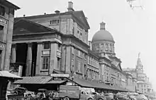 El edificio continuó albergando el mercado central de agricultores,[1] una mezcla cada vez más multicultural de pequeños vendedores,[7] hasta que se cerró en 1963 y se programó para su demolición. Sin embargo, se transformó en una instalación multiusos, con un centro comercial que alberga cafés al aire libre, restaurantes y boutiques en los pisos principal y segundo, así como una sala de alquiler y salas de banquetes en los pisos inferior y superior y la oficina municipal. espacio.