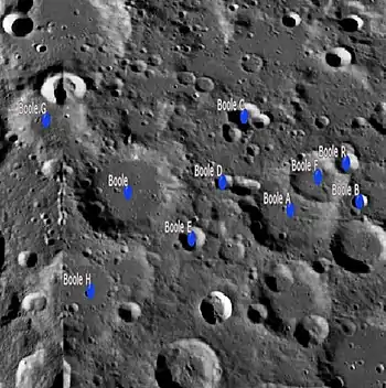 Al norte de Boole se encuentra el cráter Cremona, y al suroeste están situados Paneth y Smoluchowski.