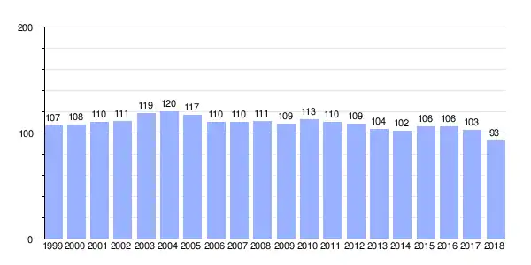| Gráfica de evolución demográfica de Bordelle entre 1999 y 2018 |