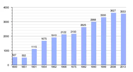 Los datos demográficos contemplados en este gráfico de la comuna de Bornel[4] se han cogido de 1800 a 1999 de la página francesa EHESS/Cassini, y los demás datos de la página del INSEE.[5]