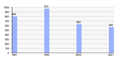 Hasta 2021 la población era de 565 habitantes,[2] con una densidad de población de 39,88 habitantes por kilómetro cuadrado.[2]