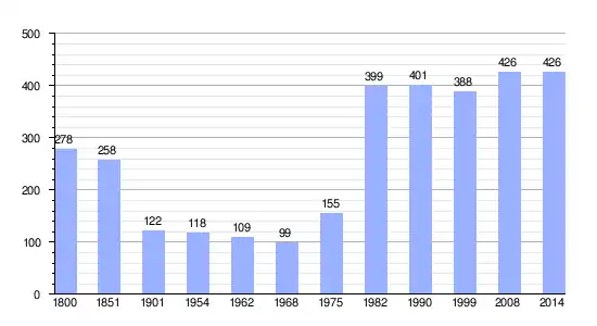 Los datos demográficos contemplados en este gráfico de la comuna de Bosc-Renoult-en-Roumois[5] se han cogido de 1800 a 1999 de la página francesa EHESS/Cassini, y los demás datos de la página del INSEE.[6]