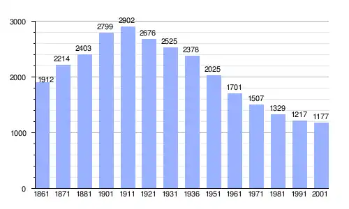 | Gráfica de evolución demográfica de Bosio entre 1861 y 2001 |