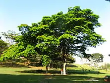 Entre las especies endémicas y características de la Chiquitanía se encuentran el morado (Machaerium scleroxylon), Machaerium acutifolium, el momoqui (Caesalpinia pluvinosa = Poincianella pluvinosa), la tarara amarilla (Centrolobium microchaete), el roble sudamericano o palo trébol (Amburana cearensis), el tasaá (Acosmium cardenasii), Casearia gossypiosperma, Neea steinbachii, Anadenanthera colubrina, Piptadenia viridiflora,[17][18][19][20] el palo borracho rosa (Ceiba speciosa), el cebil (Anadenanthera colubrina), el urunday (Myracrodruon urundeuva = Astronium urundeuva), el quebracho brasileño (Schinopsis brasiliensis), el lapacho negro (Handroanthus heptaphyllus),[9] Pseudobombax campestre,[21]