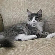 ![]() El gato modelo que sirvió para elaborar el estándar de los gatos de bosque de Noruega. | ||