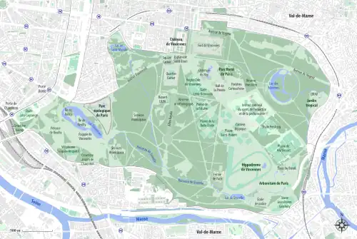 ![]() Bosque de Vincennes Ubicación del bosque de Vincennes en la ciudad de París | ||