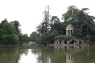 ![]() El lago Daumesnil, en el parque conocido como Pelouse de Reuilly («césped de Reuilly»), en las puertas mismas del bosque de Vincennes. | ||