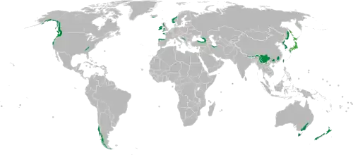 Distribución original de los bosques lluviosos templados.