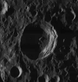 Esta formación no se ha erosionado significativamente por impactos, y se conserva un borde exterior bien definido que no está cubierto por cráteres más pequeños. La pared interior es amplia y tiene una superficie aterrazada. El piso interior tiene un bajo pico central que está desplazado ligeramente hacia el norte desde el punto medio.