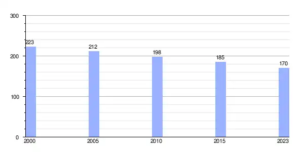| Gráfica de evolución demográfica de Bousés entre 2000 y 2023 |