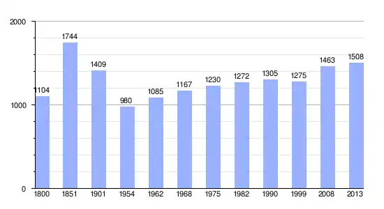 | Gráfica de evolución demográfica de Bouzillé entre 1800 y 2013 |