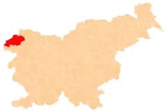 Se ubica en el valle alto del río Isonzo junto a la frontera con Italia, unos 40 km al noreste de Údine.[8]