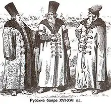 Posteriormente, en Rusia se asocian a una nobleza rural que se caracterizaba por su indumentaria particular: abrigos largos de brocado y terciopelo, forrados de pieles, llegando hasta los pies, altos gorros de marta cibelina y largas barbas.