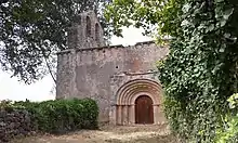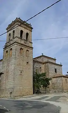 Monumental templo barroco con torre, levantado sobre otro románico, del que se aprovecharon algunos sillares y molduras. Además se conservan la pila bautismal y la de agua bendita. La bautismal presenta una copa decorada con bocel en el borde superior, seguido de una banda de semicírculos y gallones. La pila benditera está formada por el pie de cuatro columnas sobre el que se apoya un capitel tallado por los cuatro lados y vaciado en la parte superior, se decora con hojas esquemáticas en las esquinas y máscaras en el centro de las caras.