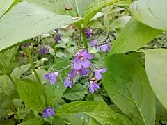 Tiene rizomas de 3 mm de diámetro. Tallos erectos, no ramificados en el ápice, de 30-40 cm de altura, escasamente corto estrigosa. El peciolo de las hojas del tallo central de 3-5 cm; limbo obovadas-oblongas, de 2-5 cm, envés velloso, estrechamente alados, 5 o 6 hojas superiores pseudo-verticiladas, corto pecioladas, obovadas a obovadas-elípticas, de 6-12 x 2-5 cm, la base cuneiforme, ápice corto acuminado. Las inflorescencias terminales, de 5 mm, densamente con hasta 6 flores, ebracteadas. Pedicelo de 4-15 mm. Flores llenas en la parte superior del raquis. Cáliz de 8 mm, lóbulos subulada-lanceolados, de 1,1 cm. Corola púrpura, de 1,1 cm. El fruto en forma de nuez de 3-3,5 mm, superficies abaxial triangular-ovadas, con cicatriz de unión cerca de la base. Fl. Abril-junio. Tiene un número de cromosomas de 2 n = 24.[2]