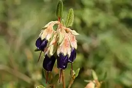 Alcanza entre 0,5 y 2 m de altura, con ramos cilíndricos estrigosos.. Hojas pequeñas isomorfas, con pecíolo de 1 a 4 mm; lámina gruesa lanceolada a aovada, pilosa, de 7 a 17 mm de longitud por 3 a 10 mm de anchura. Flores péndulas en las axilas opuestas de las hojas superiores, con brácteas de 7 a 12 mm de largo; hipantio campanulado de 4,5 a 5,5 mm, color rosado a fucsia; sépalos de 4,5 a 10 mm de largo, aovados con ápice agudo; pétalos obovados de color morado, de 13 a 18 mm de longitud; estambres con filamento rosado de 5 a 6 mm, con anteras oblongas de 4 a 5 mm amarillas; estilo rojo de 15 a 26 mm de longitud con estigma subtruncado. Fruto en cápsula ovalada de 6 a 8 mm de largo, con múltiples semillas pequeñas cocleadas.[3]
