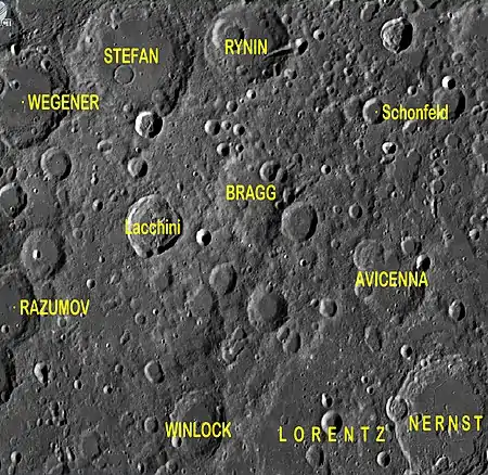Por convención estos elementos son identificados en los mapas lunares poniendo la letra en el lado del punto medio del cráter que está más cerca de Bragg.