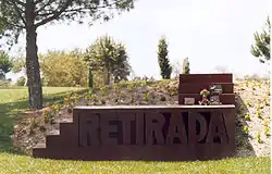 • Escultura y placa conmemoratoria situada en el lugar de emplazamiento del desaparecido Campo de confinamiento de Bram.
