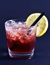 | Preparación | Llene el vaso con hielo picado. Construye ginebra, jugo de limón y jarabe simple. Revuelva, y luego vierta el licor de moras de forma circular para crear un efecto marmoleado. Decorar con dos moras y una rodaja de limón. | |
