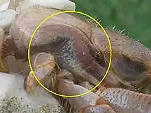Los artrópodos acuáticos suelen tener branquias que en la mayoría de los casos son apéndices modificados. En algunos crustáceos están expuestas directamente al agua, mientras que en otros están protegidas dentro de una cámara branquial.[9] El cangrejo de herradura tiene branquias laminares que son aletas externas, cada una con muchas membranas finas en forma de hoja.[10]