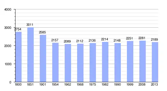 Los datos entre 1800 y 2013 son el resultado de sumar los parciales de las dos comunas que forman la nueva comuna de Brantôme-en-Périgord, cuyos datos se han cogido de 1800 a 1999 (o a 2006 según corresponda), para las comunas de Brantôme[4] y Saint-Julien-de-Bourdeilles[5] de la página francesa EHESS/Cassini. Los demás datos se han cogido de la página del INSEE.[6]