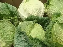 También se conoce como repollo blanco por su característico color verde pálido, para diferenciarla de la lombarda que se le conoce como repollo morado.[2]