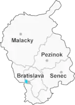 Está rodeado por los distritos de Bratislava II, Bratislava III, Bratislava IV y Bratislava V.