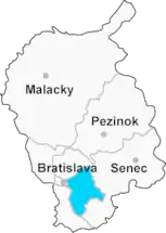 Al oeste y al norte limita con los distritos de Bratislava I, Bratislava III y Bratislava V así como al este y al sur con el distrito de Senec.