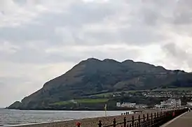La línea de ferrocarril Dublín-Wicklow pasa por la ladera de la montaña, junto a la costa, dada la cercanía de la estación de Bray Daly.