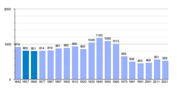 | Gráfica de evolución demográfica de Brea de Tajo[3] entre 1842 y 2021 |