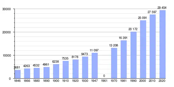 Todos los datos históricos relativos al actual municipio, el siguiente gráfico refleja su evolución demográfica, incluyendo municipios después de efectuada la fusión el 1 de enero de 1977.