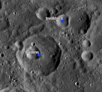 Bredikhin es un cráter de impacto que se encuentra en la cara oculta de la Luna, justo al oeste del cráter Mitra, y al noreste de Raimond.